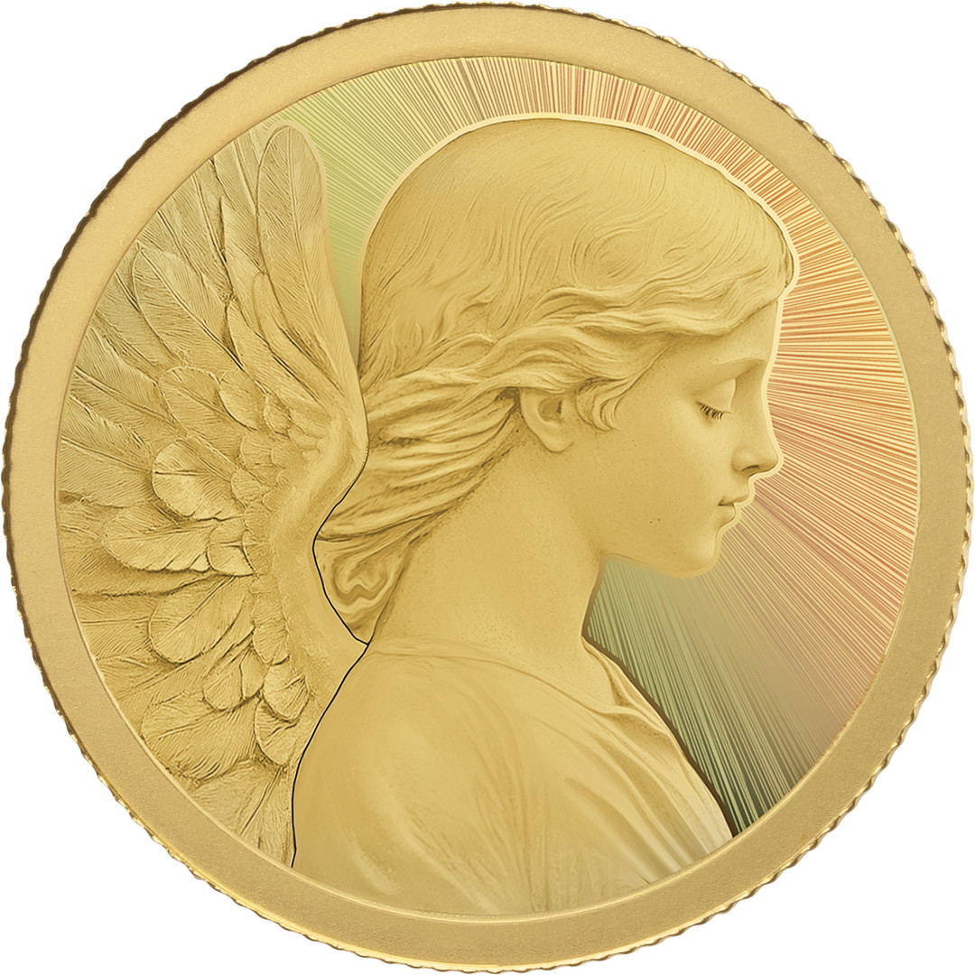 Goldmünze Weihnachtsengel, im Samtsäckchen