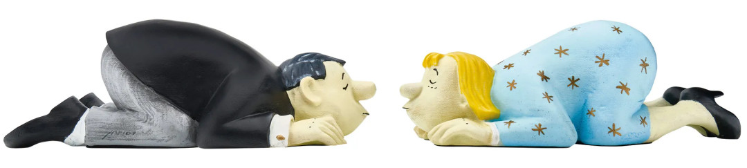 Loriot: Skulpturenpaar "Szenen einer Ehe, Sie & Er", Version in Kunstguss handbemalt
